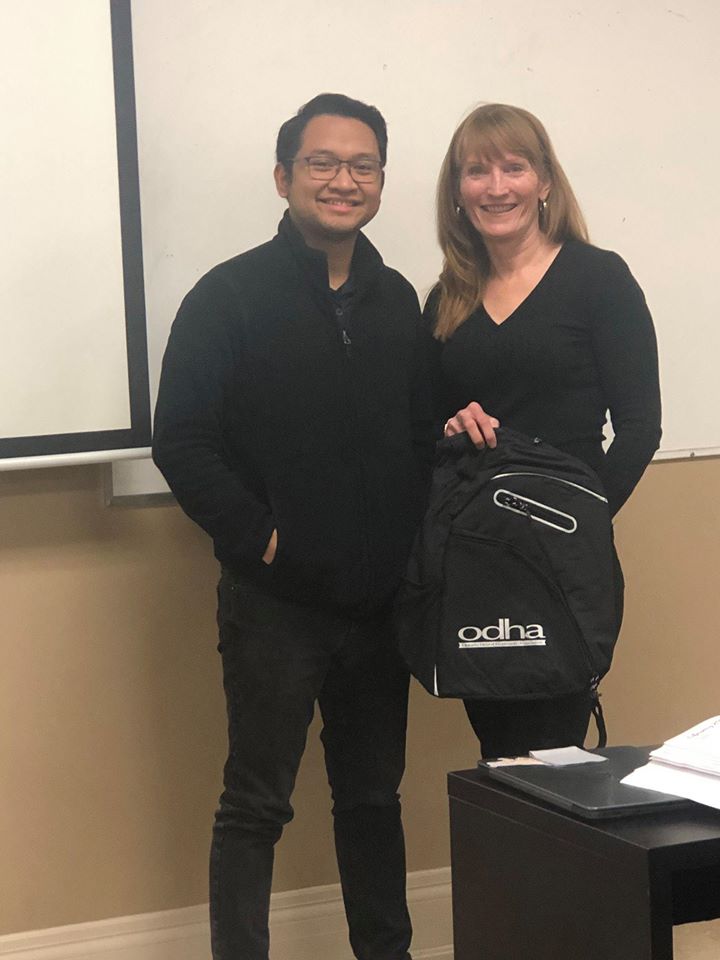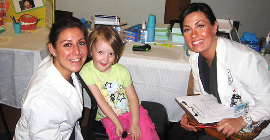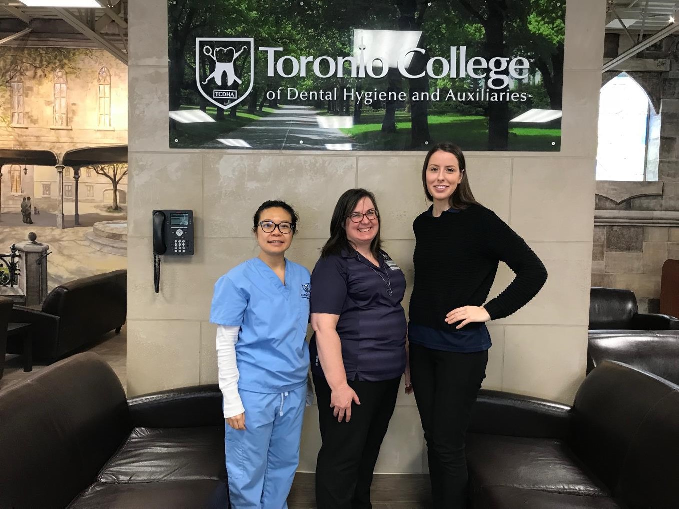 Two 4th semester students help maintain the oral health of a patient at their Evangel Hall community placement.